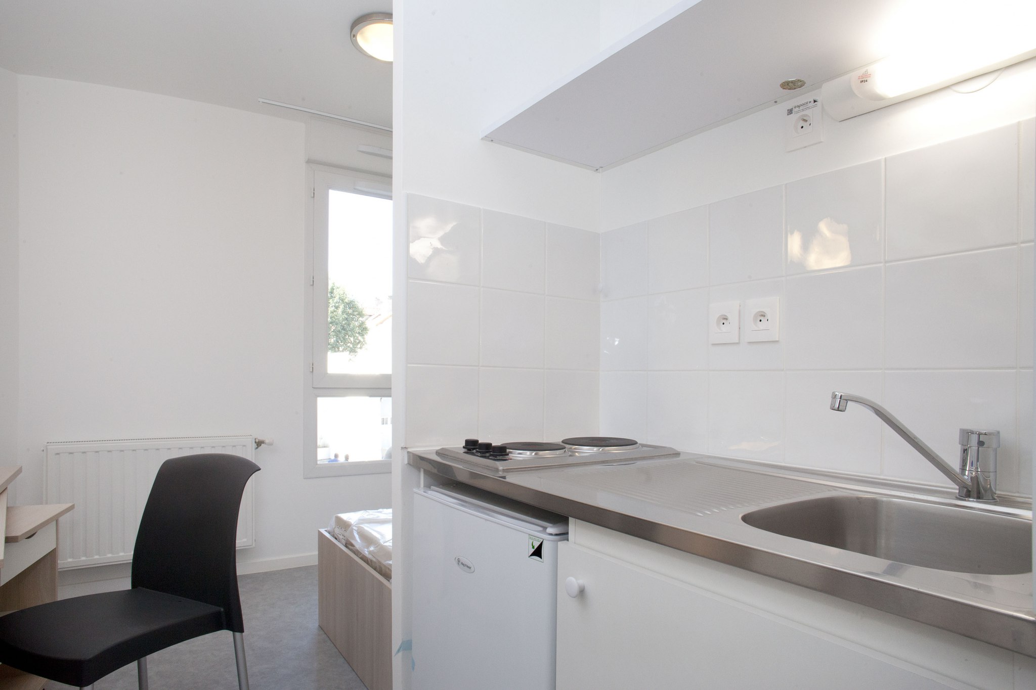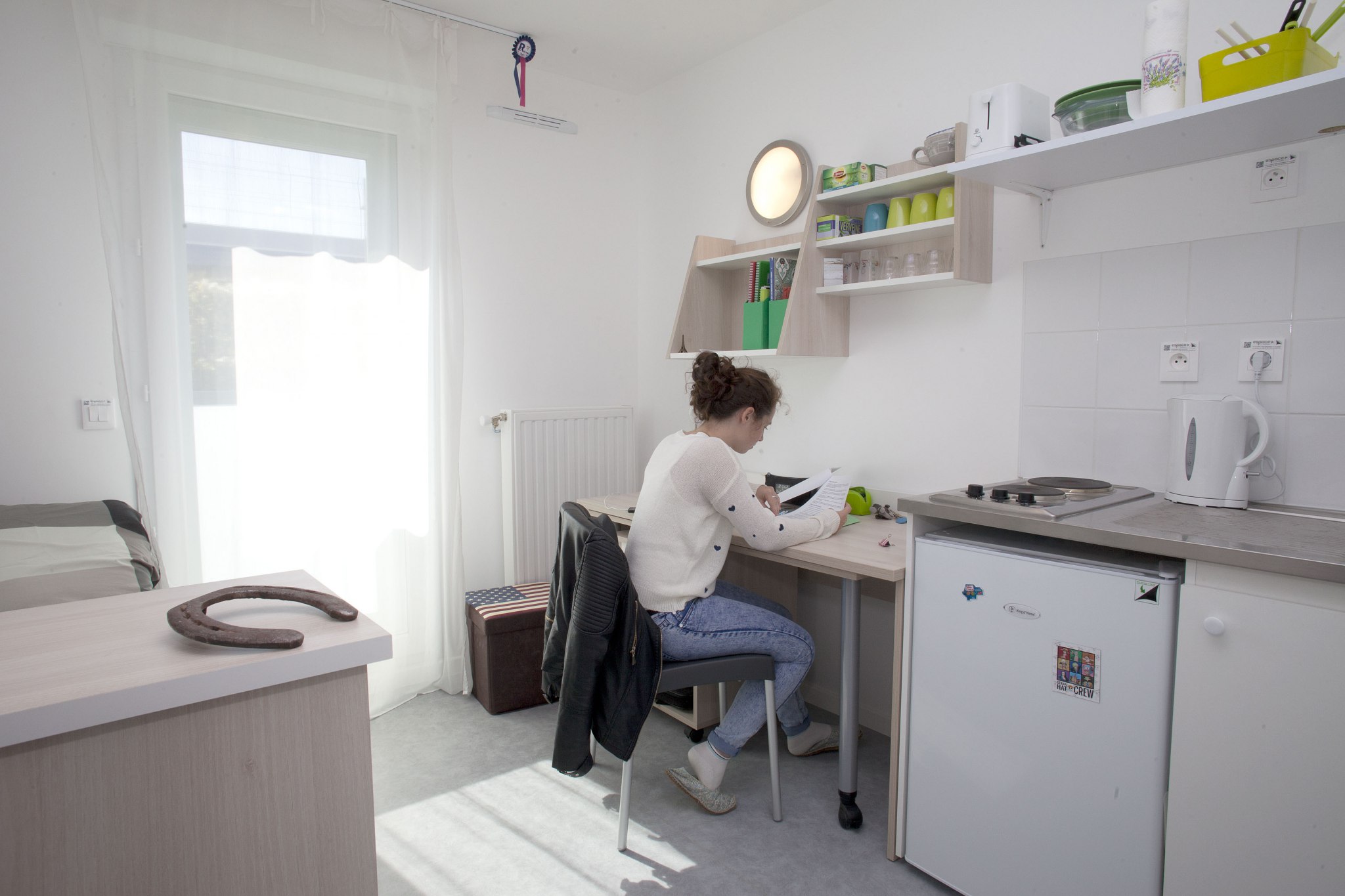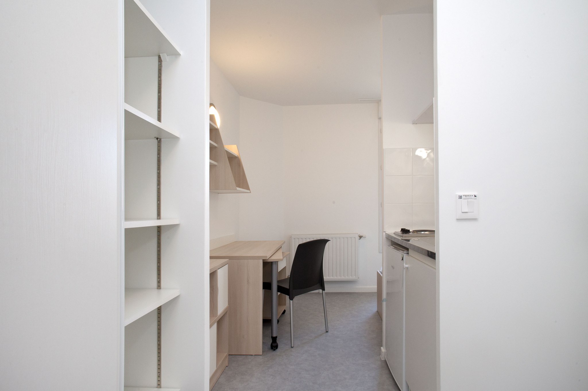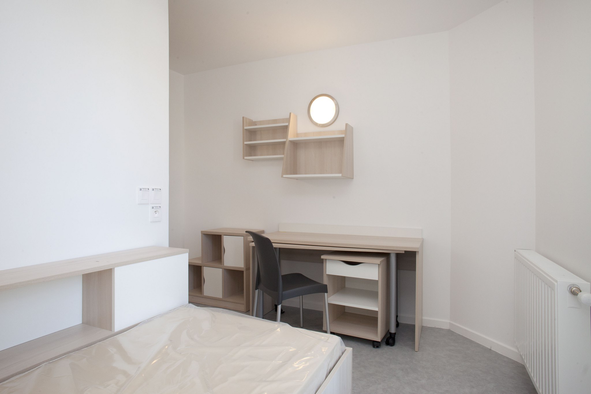 Nos appartements sont entièrement meublés et équipés : lit avec matelas, plan de travail, chaise, éclairage, placard, volets roulants, prise de télévision et téléphone.